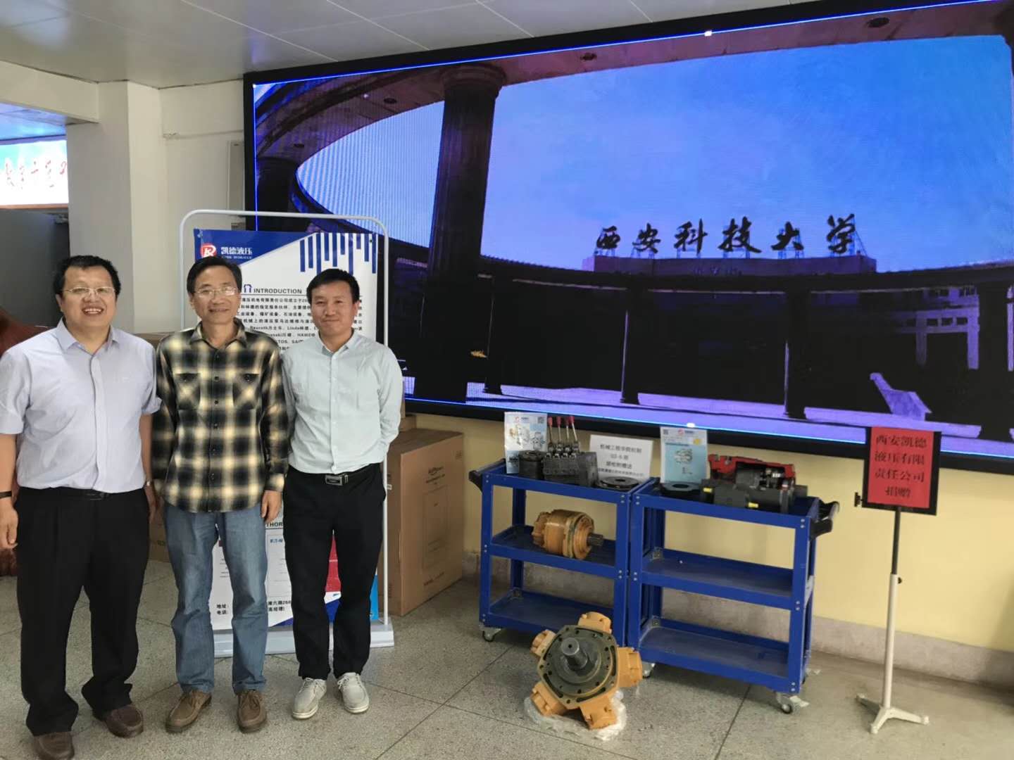 9月14日上午,為慶賀西安科技大學(xué)六十周年校慶,我公司總經(jīng)理高彥軍、技術(shù)總監(jiān)胡松剛一行代表西安凱德液壓來(lái)到西安科技大學(xué)臨潼校區(qū)驪山校園,向機(jī)械工程學(xué)院捐贈(zèng)了液壓馬達(dá)、液壓泵等液壓元件解剖件。機(jī)械工程學(xué)院黨委書(shū)記汪衛(wèi)兵,院長(zhǎng)張旭輝,黨委副書(shū)記李婉麗,副院長(zhǎng)趙栓峰,副院長(zhǎng)寇發(fā)榮等相關(guān)負(fù)責(zé)人及部分學(xué)生參加了簽約儀式。