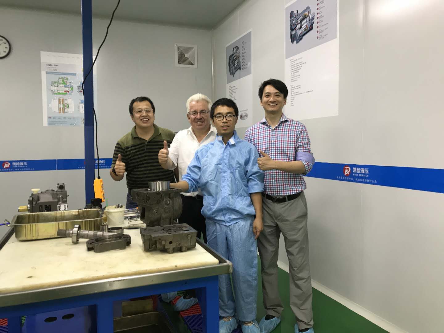 繼林德液壓德國(guó)前培訓(xùn)中心及售后服務(wù)部長(zhǎng)Michael Zivkovic 到訪后,9月6日,凱德液壓又迎來(lái)另一位國(guó)際友人美國(guó)派克漢尼汾 德國(guó) PV泵 經(jīng)理 Ralf Dobritzsch & David Li 以及 派威機(jī)電 彭博士的蒞臨到訪。在參觀了解完我公司的工位布局、業(yè)務(wù)內(nèi)容以及企業(yè)長(zhǎng)遠(yuǎn)規(guī)劃后,Ralf & David 同時(shí)給予了高度的肯定,肯定了我企業(yè)在未來(lái)的發(fā)展所存儲(chǔ)之潛力,以及具有強(qiáng)大優(yōu)勢(shì)的企業(yè)規(guī)劃。隨后,在簡(jiǎn)短的技術(shù)分享座談中,Ralf分享了派克公司的發(fā)展歷程以及派克PV在大中華區(qū)的市場(chǎng)布局,在鼓勵(lì)凱德液壓的同時(shí),Ralf又詳談了派克液壓在大中華區(qū)近幾年的市場(chǎng)份額的逐年猛增趨勢(shì),也算是給凱德液壓打了一劑強(qiáng)心針。‘’工欲善其事,必先利其器‘’,是的!市場(chǎng)很大! 但一個(gè)企業(yè),要想走的更遠(yuǎn),還需要整支團(tuán)隊(duì)的強(qiáng)大,戒驕戒躁,在這此起彼伏的市場(chǎng)經(jīng)濟(jì)中,保持一顆‘’匠心" ,以質(zhì)量求生存,以實(shí)力贏未來(lái),全心全意為新老客戶提供專業(yè)高品質(zhì)的液壓系統(tǒng)服務(wù)!