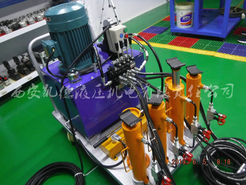 此次承接軍工雷達(dá)測(cè)試車(chē)輛調(diào)平支撐裝置為人工調(diào)平系統(tǒng),主要應(yīng)用于實(shí)驗(yàn)研究方向和車(chē)輛標(biāo)定工作。調(diào)平系統(tǒng)構(gòu)成:由泵站、控制閥組、調(diào)平支撐油缸、定制卡爪輔件等組成。采用分件搬運(yùn),現(xiàn)場(chǎng)組合的設(shè)計(jì)原則,單件重量不大于30Kg,便于搬運(yùn),操作靈活。