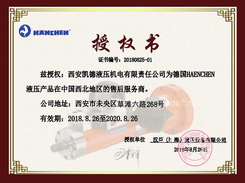 熱烈祝賀西安凱德液壓機(jī)電有限責(zé)任公司被德國(guó)漢臣(HAENCHEN)授權(quán)為中國(guó)西北地區(qū)液壓產(chǎn)品售后服務(wù)商。